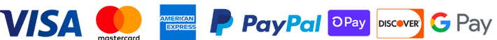 We accept the following payment methods: VISA, Mastercard, American Express, Discover, PayPal, Shop Pay and Google Pay.
