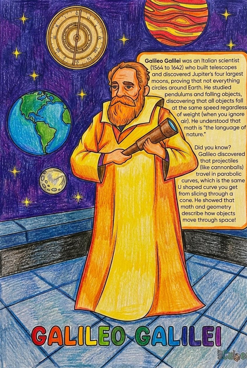 Each page features an engaging story written for kids and teens (ages 8-18) that explains how these brilliant thinkers used geometry, colour theory, and mathematical concepts to make groundbreaking discoveries. Every pioneer includes a short, easy-to-read biography and a fascinating "Did You Know?" fact that connects their work to geometry, color, or the amazing CMY cubes!