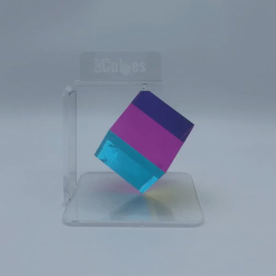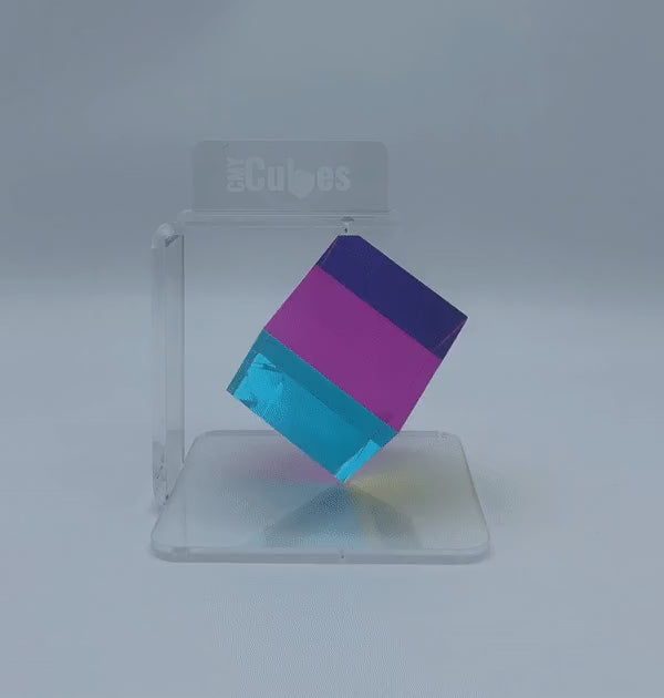 Introducing the GyroStand, a revolutionary way to display your Original CMY Cube (50mm). With its sleek design, position the Cube into the stand by aligning its opposite corners, letting it sit securely in place. Once secured, the GyroStand brings your Cube to life, allowing it to spin a full 360º.